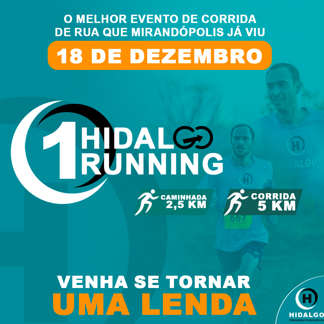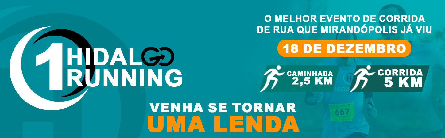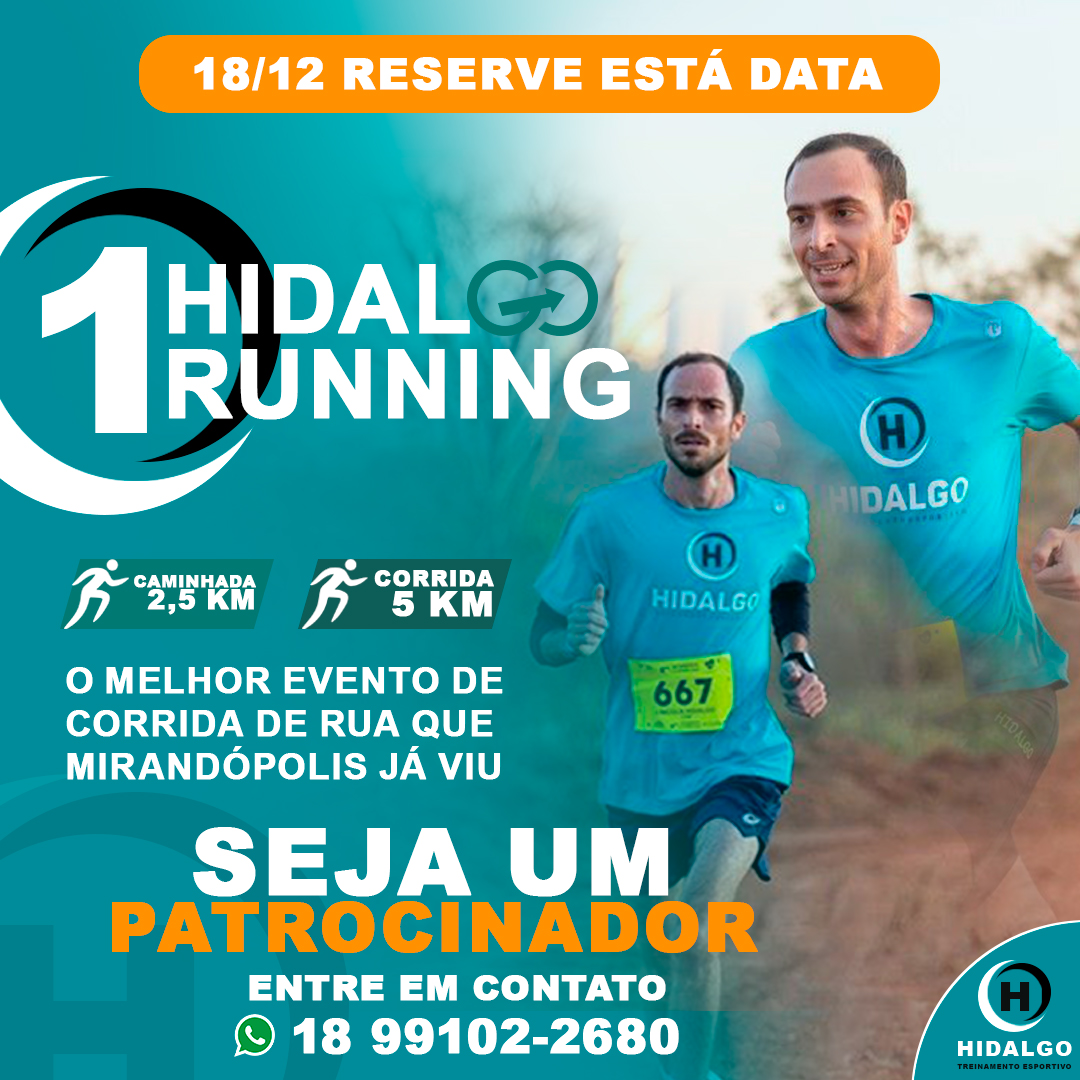 1ª Hidalgo Running: Estamos organizando uma corrida de rua em nossa cidade (Mirandópolis-SP) uma corrida não, uma corrida pra entrar para história da cidade! E vamos precisar da ajuda do comércio local para atingir nossos objetivos, se você se interessou, entre em contato com a gente. Em breve, as inscrições serão abertas.